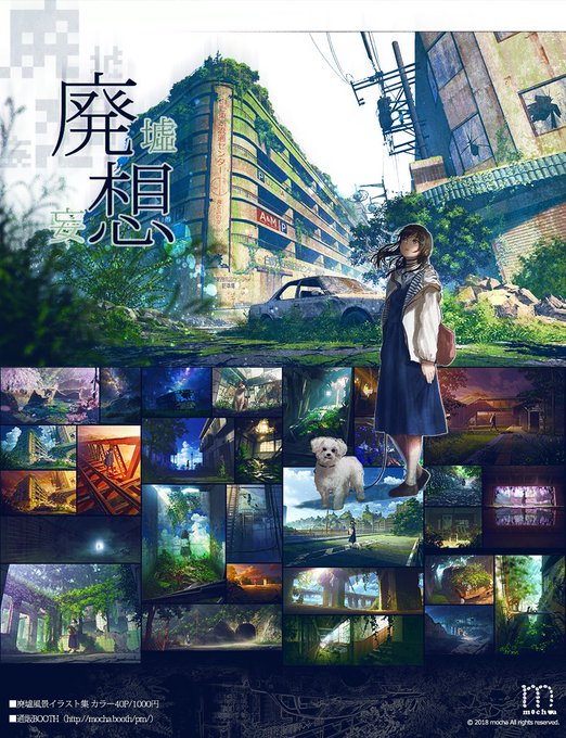 廃墟がテーマのイラスト集です。今回は「妄想」がテーマでもあり、こういう廃墟、ノスタルジックな風景があったらいいなと妄想したりして描いています。
