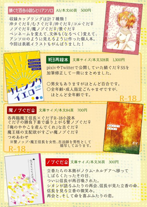 既刊ばかり沖ぐだ♀・ノブぐだ♀・むさぐだ♀小説本がございます。