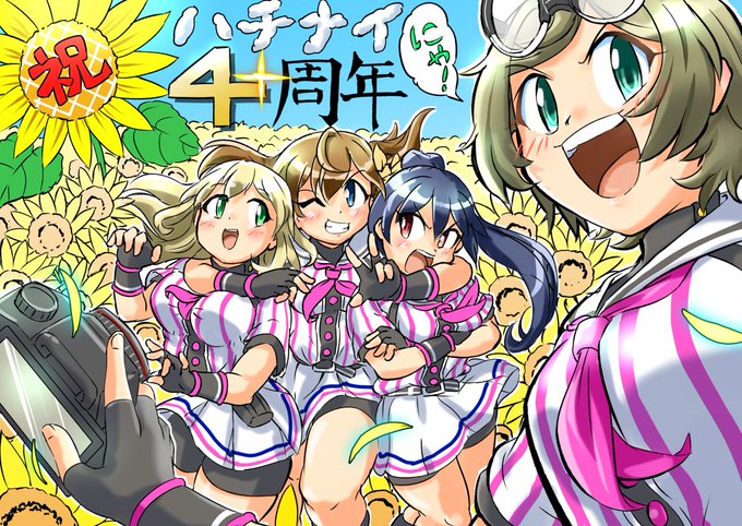 おくればせながら、ハチナイ4周年記念ファンアートイラストを……すっ。紹介動画では後ろから数えて2番目に姿を見せます。
