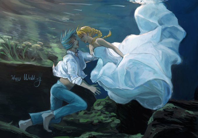 世には水中ウエディングなるものがあると知り、式中に戦闘等が一波乱あって水に落ちたけど幸せは幸せ、みたいな2人を妄想していました。