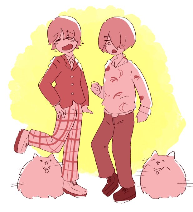 絵が汚くて申し訳ねーけどサンリオが出してるお笑いプロジェクトわらひび!を見てください!これは推しコンビのハピコマ(はぴねすこまんだー)です!!