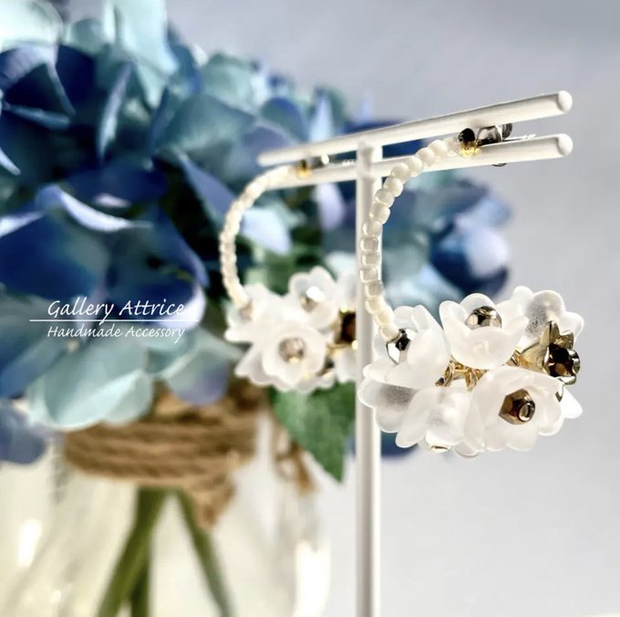 【ハーフリース ホワイトフラワー フープピアス(チタン製フープピアス)】