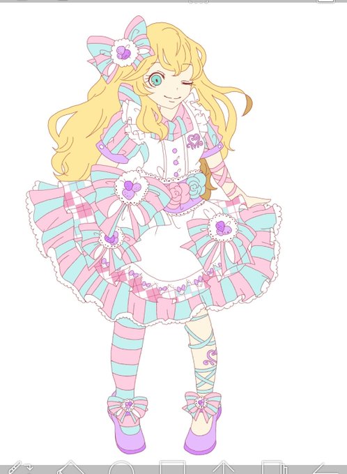 アリスハートベリーコーデのカラーボツ案(一枚目→ロリポップイメージ、二枚目→チョコミントイメージ)なんだけど、デザインがデザインだから色の度が過ぎちゃって どギツい...(´ω`)
