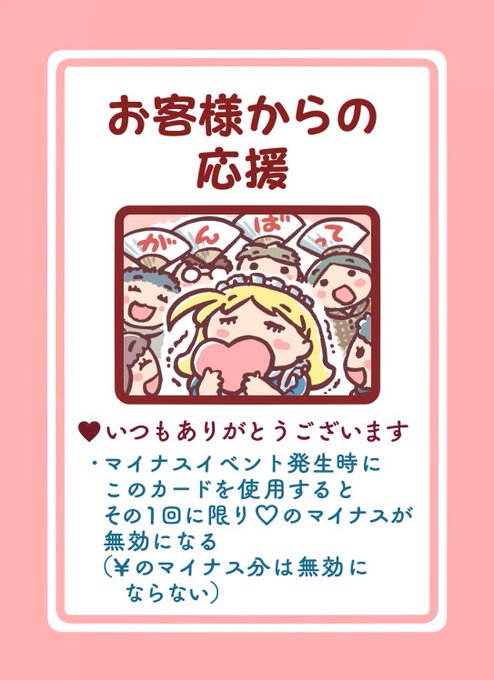 トラブルが楽しい♪というドMの方には好評でしたが、もう少し楽しく気軽にメイド喫茶経営で遊びたい時にプレイを助ける《お客様からの応援》カードを追加しました。