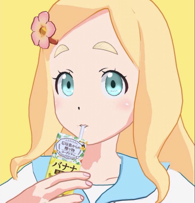バナナ豆乳飲料を買ったので #HoloModels で豆乳が大好きな #東雲めぐ ちゃんに飲んでもらいました! #めぐあーと #はぴばとうにゅう ハピバト…?(記憶喪失
