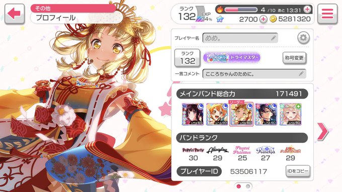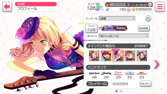 ㊗️ランク140達成!&ドリフェス開催記念にまたまたバンドリ履歴書新しくしました(*´꒳`*)