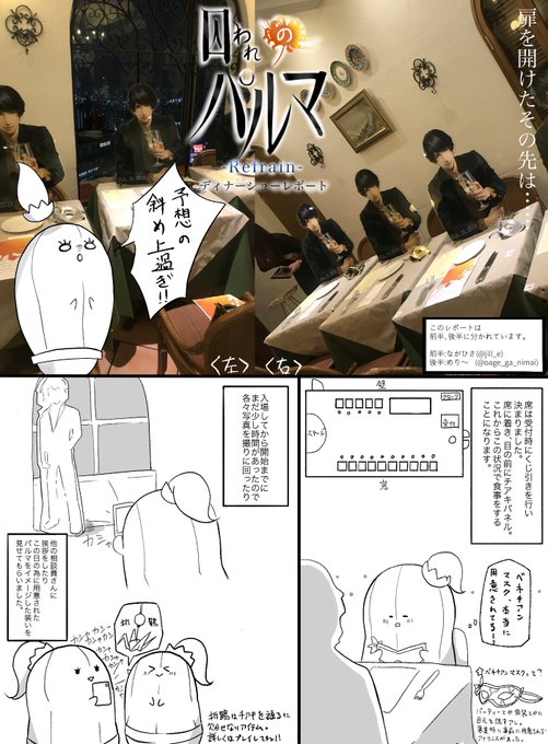 遅くなりました、パルマRディナーショーのレポ漫画になります。今回レポ漫画を同じく参加者のめり〜さん(@oage_ga_nimai )と前半後半に分けてお届けしますので、何卒よろしくお願い致します。