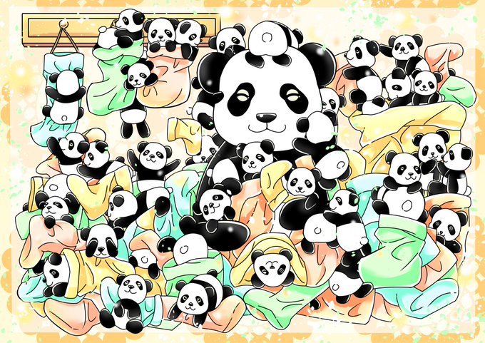 昨年アドベンチャーワールドのパンダアートフェスコンテストで入賞した作品です。桜浜桃浜、結浜、彩浜、楓浜の5姉妹を描けて幸せでした。