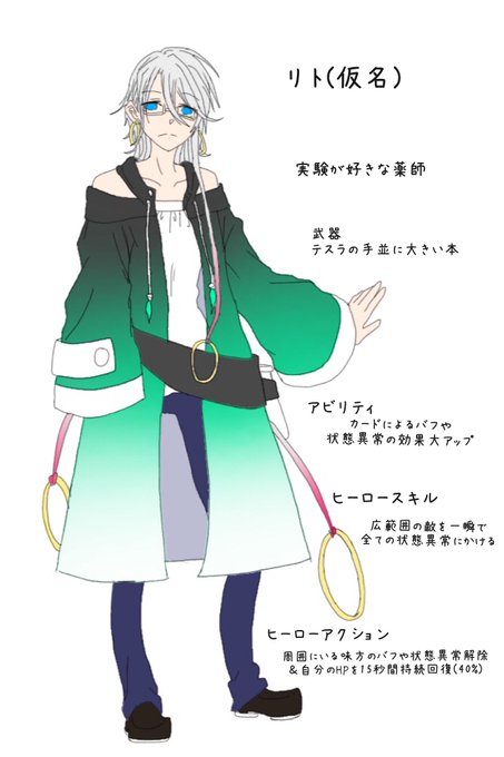 画像はヒーローの立ち絵、設定、今のところ出てる案です(既に出てる中でこの案いいと思うってのでも◎)
