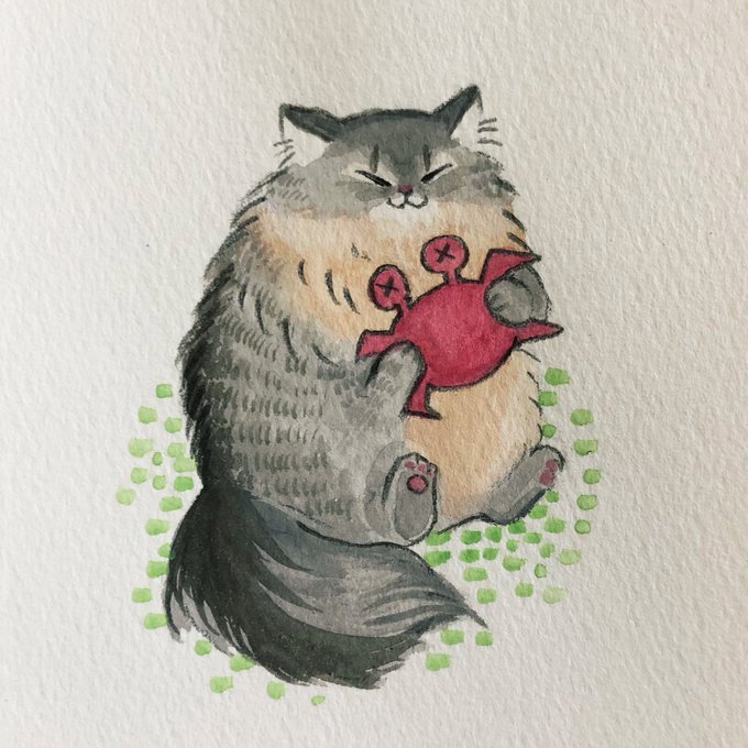 2匹絵はA4サイズ、1匹絵はハガキサイズです😃めちゃくちゃ可愛いふたりを描けて光栄です。シャルくんがビスケくんの蟹のぬいぐるみをとっちゃう動画がオススメです✨