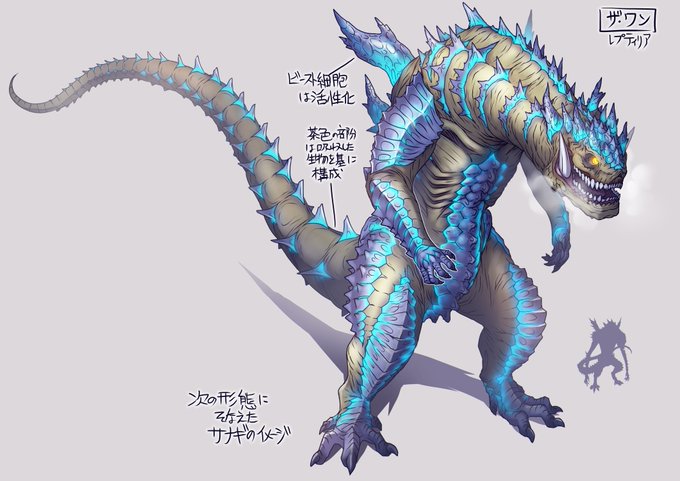 イドロビアは人間要素を濃くしつつ悪魔的なプロポーションに調整。レプティリアはややウルトラ怪獣寄りに整えました。イドロビアが幼虫、レプティリアはサナギのイメージです。
