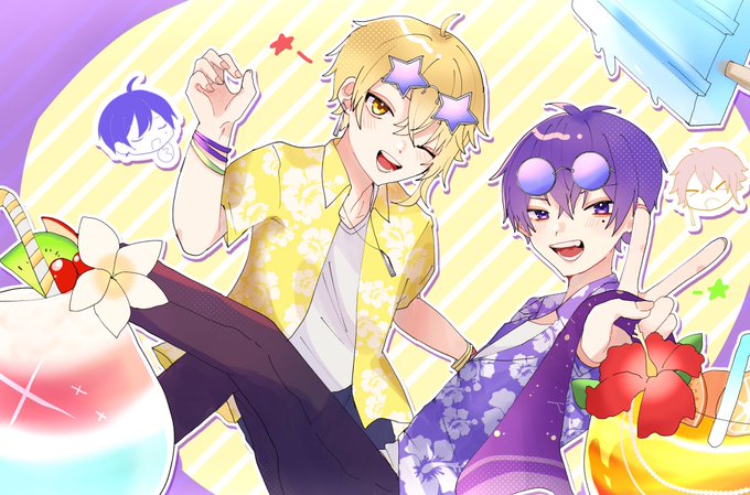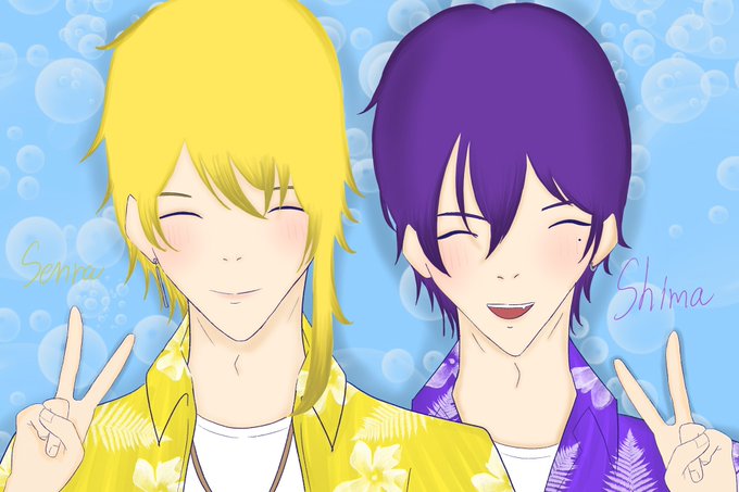 ♪ファイティンサマーカーニバル/志麻×センラ 輝く君はジーザス!!!!🌺🏖💜💛 #志麻 #センラの絵ぇやん #うりゃしましゃかたせん