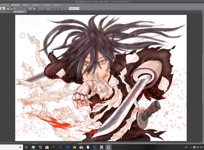#どろろ の #百鬼丸 を線画アナログ、色付けは、 #CLIPSTUDIO & #photoshop で描きました‼️