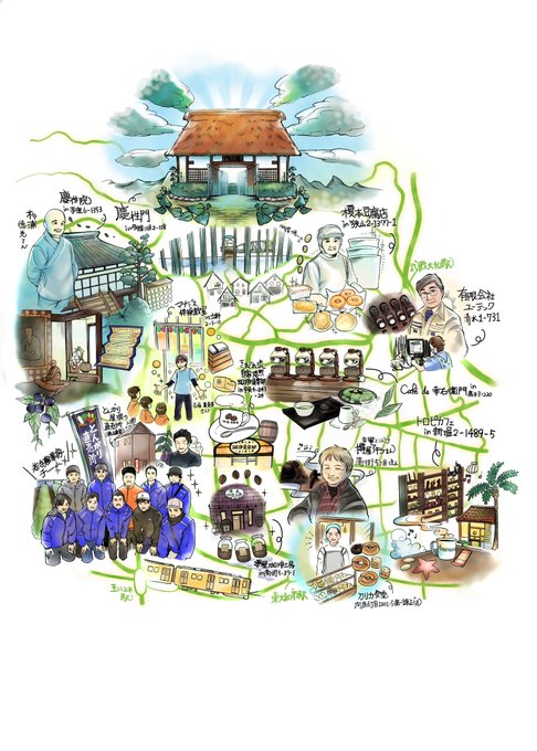 東大和市のフリーマガジン『ヤマクラ』のマップイラスト(全3冊分)