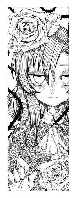 #フリ消し ぽよちゃん(@mitu_yume623)の企画に参加したメアリーに色を塗りました~! 描く方も掘る方も地獄な絵でした(( 塗りたい方はバケツに塗りできないですがどうぞ😬