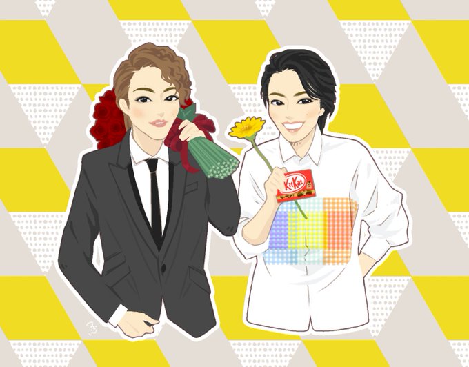 ブリネク特別編の時に思い立って描いてたやつです。誕生日1人にさせない相手には薔薇の花束にスーツ、気になる先輩相手には一輪のガーベラにお茶目シャツ(キットカット付き)。どちらがお好みですか♪ #七海ひろき #ブリネク