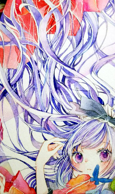 紫らしい紫色がなかったので髪は全体にマゼンタ+影にブルーバイオレットで塗ってみたり