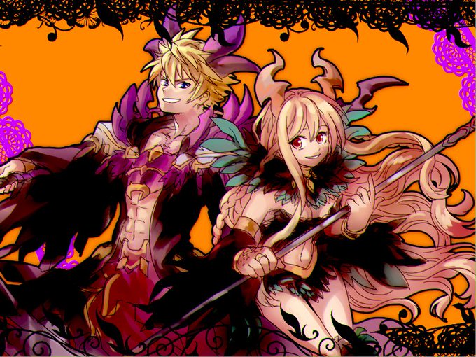 ハロウィンということで クシラナ(左)は魔女 グリエル(右)は悪魔 の衣装で描きました。 背景カラーが決められず両方投稿(笑) 雷の幻創少ないし、ラヴァとエリモも進化したし、幻創進化してくれたら…と思ってます。 #ブレ生 #ブレドロ