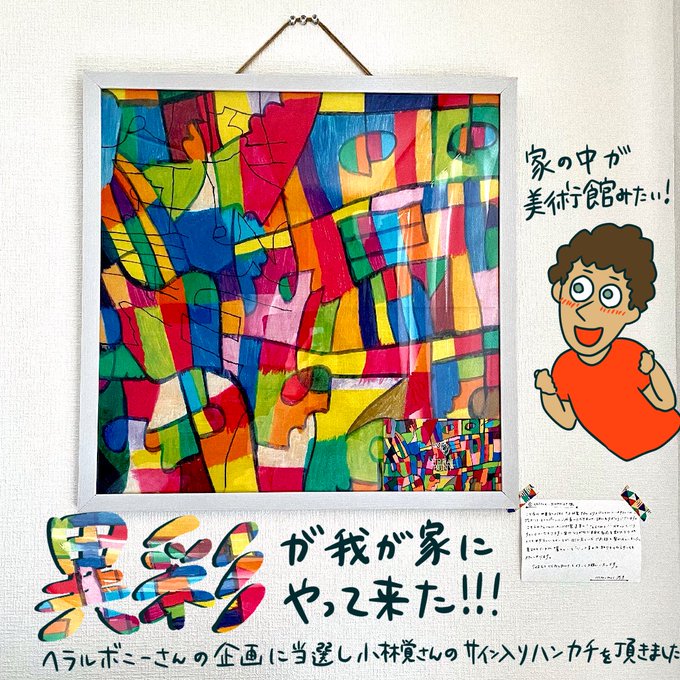 ヘラルボニーさん(@heralbony )の企画に当選し、小林覚さんのサイン入りハンカチフレームをいただきました(1/2)