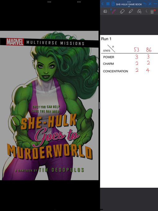 読者はシーハルクのパラリーガルという設定。各ページ最後の選択肢により、様々なページにジャンプしながら彼女と冒険を進める。マルチエンディング。選択次第でシーハルクの能力が変動するのでメモ帳必須。