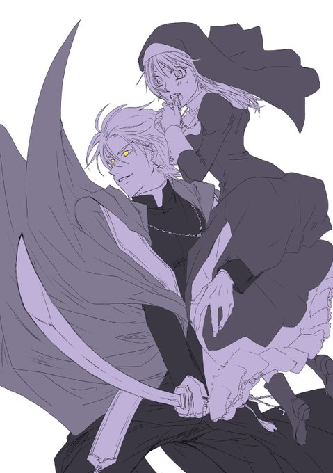 なんか午前中に僧衣(カソック)萌えな話をしていたので、昔描いたののリメイクだけど久しぶりに描いた(・∀・) 戦う神父さんとシスター♂ #ベリノエ