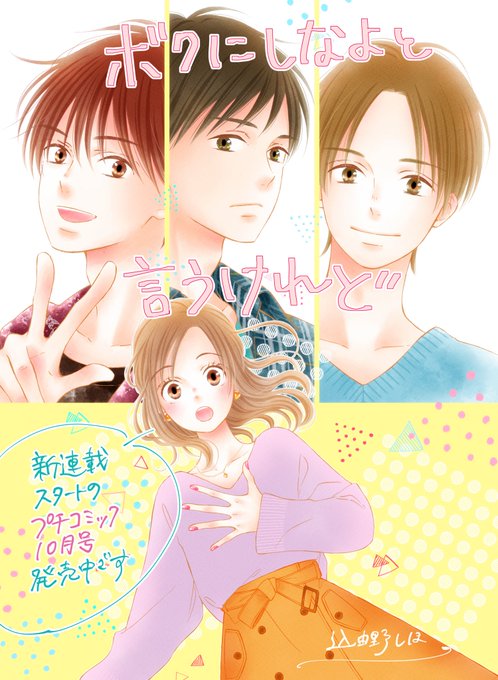 【お知らせ】 本日発売のプチコミック10月号から 『ボクにしなよと言うけれど』 新連載スタートです! ぜひのぞいてみてください☺️*.+゚ 男子が3人出てきます☘️