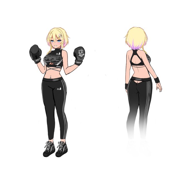 マーブルヘッドの着せ替え「ボクシングギャル」のデザイン案です。チアガールとボクシング少女という究極の二択を迫られた。