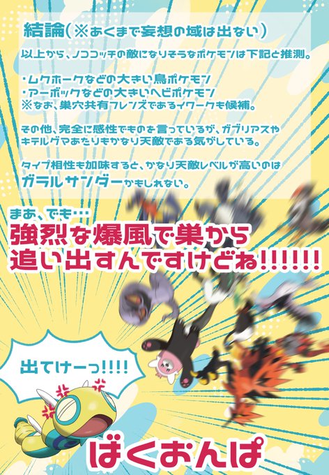 今回は、ノココッチが爆風で追い出すような敵ってどんなポケモンだろう?ということを考えてみました! #ポケモン週末レポート