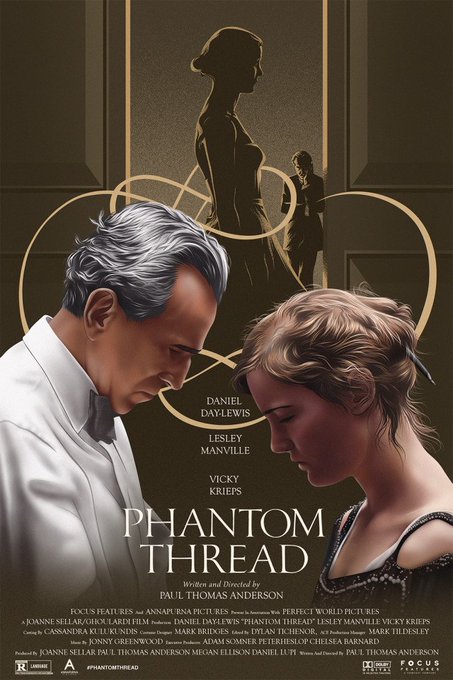 ともかく #ポール・トーマス・アンダーソン は皆注目の衣装などの美しい映像を、より美しく観せる為、35㎜フィルムで撮影し70㎜に焼き付け、その画面サイズで映える構図を意識し…今書いた事が全部正解か保障できんが、『#ファントム・スレッド』はそこまで拘って撮影された映画である事は間違いない!