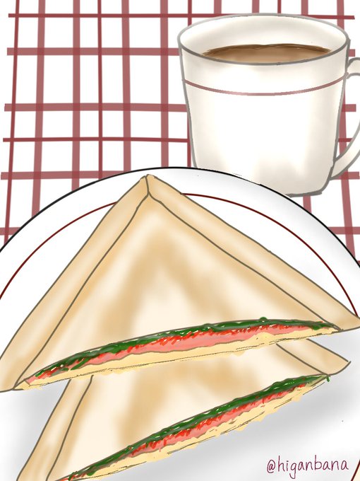 先週描いたホットサンドとカフェオレ