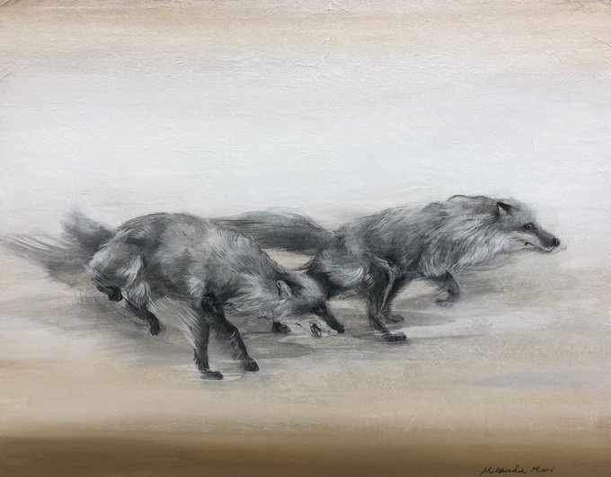 現在、先月中止となった「neo・マチ絵ール展-絵肌研究室-」での作品を、再展示していただいてます🎨✨