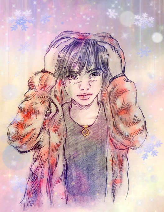 コピック 水彩色鉛筆 筆ペンで彩色 ラメ入りグルー