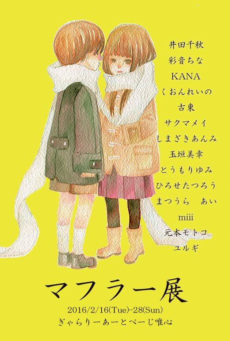 【宣伝】2/16-28京都東山にある「あーとぺーじ唯心」様でとうもり企画『マフラー展』を開催します!大好きな作家をお呼びしてマフラーをテーマにイラスト・立体を展示します