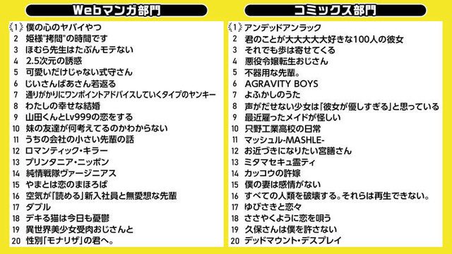 だから【女性ファンだけが投票するマンガ大賞】もやってみて欲しいな。