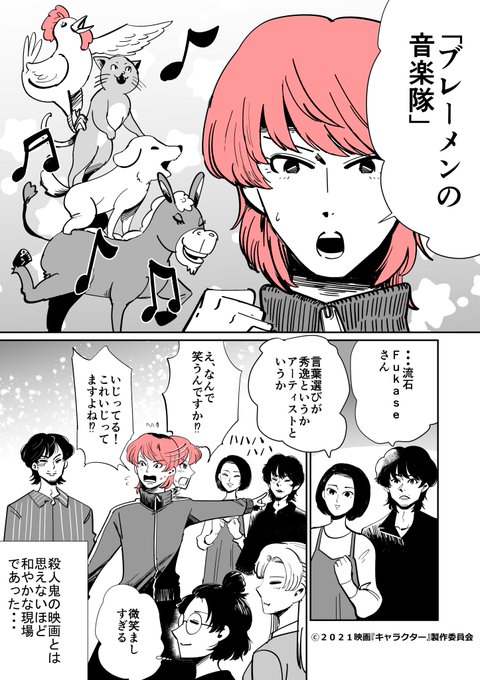 公式SNSオリジナル企画✍️ 「『#映画キャラクター』 #マンガ家は見た❗️現場潜入🥀レポート」 とある撮影休憩時🍵 #菅田将暉 さん #Fukase さん #高畑充希 さん "アレ"で和やかな雰囲気に🎵 血まみれシーンもある 本作の裏側では こんなほっこりしたエピソードも☺️ #しりとり #6月11日公開