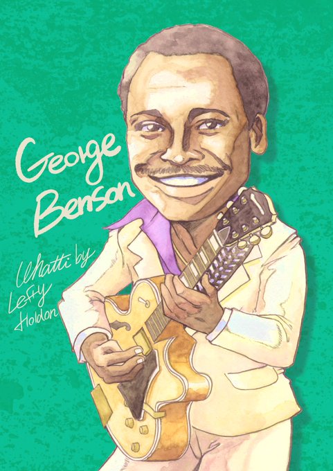 大好きなギタリスト 若かりし頃のGeorge Benson 最近はアールクルーとのコラボCDが作業BGMです。 てか今気づいたけど、bassマーカスミラーか!すげぇな #音楽好きと繋がりたい #似顔絵 #水彩画 #水彩似顔絵 #水彩イラスト #GeorgeBenson