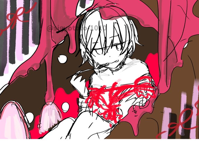 作品の怖さやグロさも出しつつ、2月らしく可愛くポップになるように描きました。