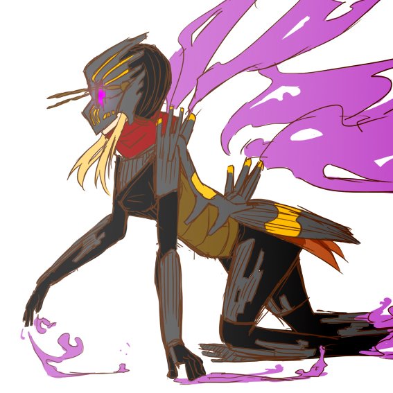 ミイデラゴミムシ。名前は三羅(さんら)。引っ込み思案で、ビビり。ナミキ連合の屋台骨的位置にいる。腰のベルトについてるのは元の姿の時のあれが変化した毒ガス爆弾でなにかに当たると中からとても熱くて激臭のガスが散布する。その特性から本人もあまり使いたがらない。