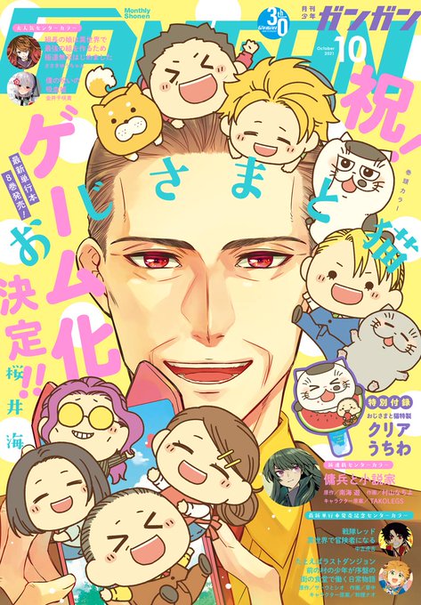 少年ガンガン9月号、本日発売!! 表紙を飾るのは、ゲーム化決定&本日単行本8巻発売の「おじさまと猫」! 賑やかなミニキャラ集合絵が目印です☆ #少年ガンガン