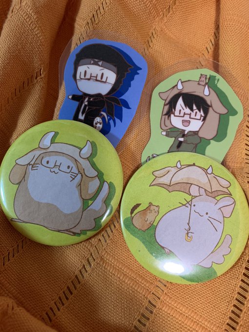ジェイドっぽいと選んでくれたお菓子に(箱がミニトランクタイプで超可愛い)、手作り缶バッジとラミカバッジ🥰