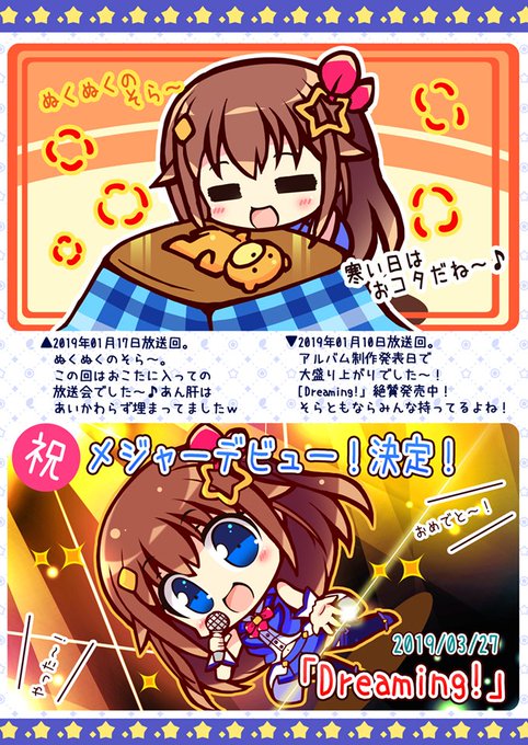 4月29日コミ1「F-47a 星クズさん」新刊情報になります~。ときのそらちゃん生放送後の感想で描いた絵をちょっとまとめた「そらちゃん生放送感想らくがきイラスト本」と「Dreaming!ミニ缶バッチ」をセットで販売します。昔のそらちゃん放送を思い出しながら見ていただければ幸いです~!(´︶`)