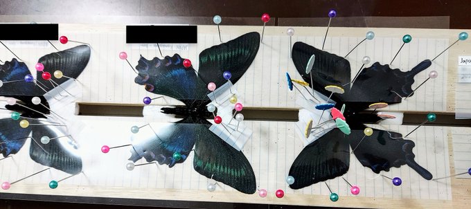 #名和昆虫博物館 名和館長が特に好きで思い入れがある蝶と仰っていて是非描こうと思いました。名和=ギフチョウやモザイク風モルフォ標本ですが、至るところに蒼翠が美しいミヤマカラスアゲハがあるので探してみて!