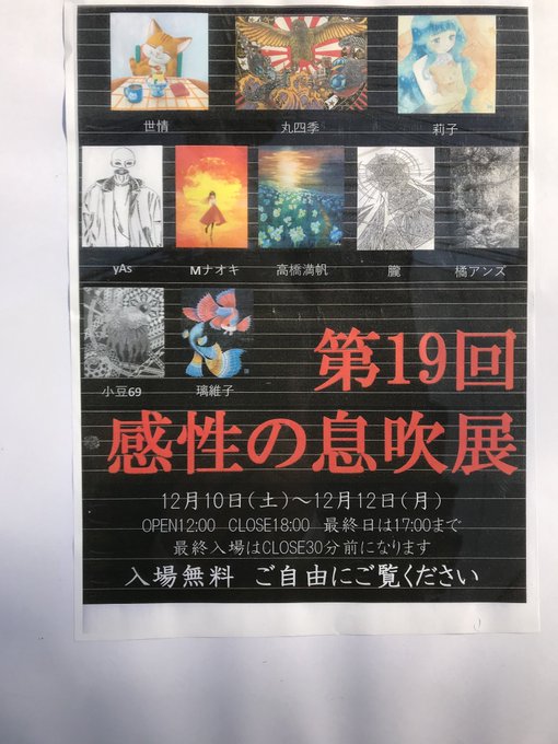 12月10日~12日に大阪市中央区のミライエギャラリー様にて開催される「第19回 感性の息吹展」に、私からはひょうひょう!3人娘で参加させていただくこととなりました!