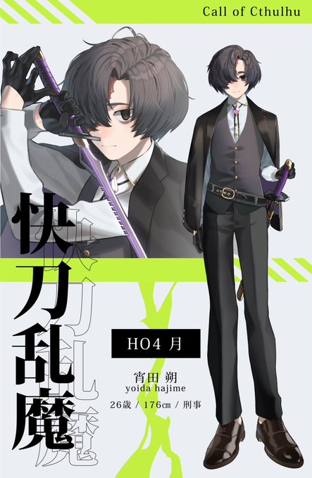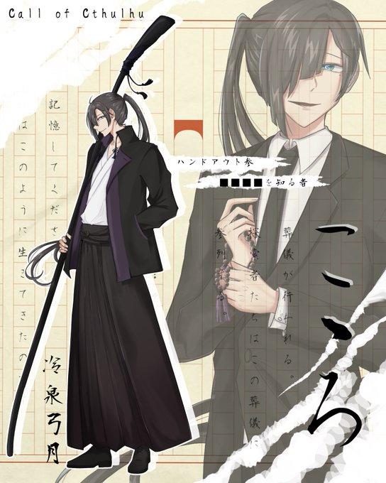 #メカクレ探索者を貼るタグ 1枚目:異説・狂人日記「輝 四狼」 2枚目:庭師は何を口遊むHO1「笑鳥 愛十」 3枚目:ごめんね、ポルックスHO2「水無月 刻成」 4枚目:刹夏HO2「月海 美陰」