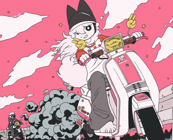 最初は2ケツで後ろに乗せてもらうだけだったのに気付いたら自分でバイクに乗る絵が増えていたメリーちゃん