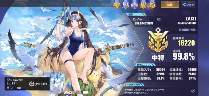 #メンテなのでプロフィールを貼ってアズレン戦況報告