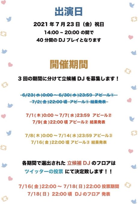 名前ないのは #モアアニDJ立候補 で採用された三名でメインフロア出演を決める投票があるので‼️