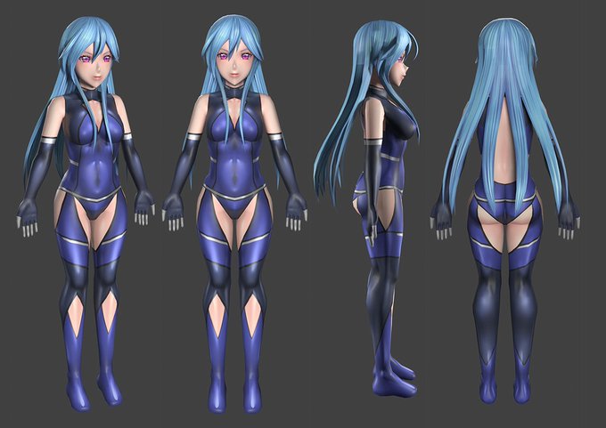 とりあえず初めてのキャラモデル出来たー。一から作ったのもあってメッシュが等間隔に作れてないのとUV展開で綺麗に整列出来なかったのでテクスチャの繋ぎ目が若干ズレたりで気になる所はありますが、キャラモデル体験としてはこれで一区切り。アイテムや装備とボーンやらはまた今度で。