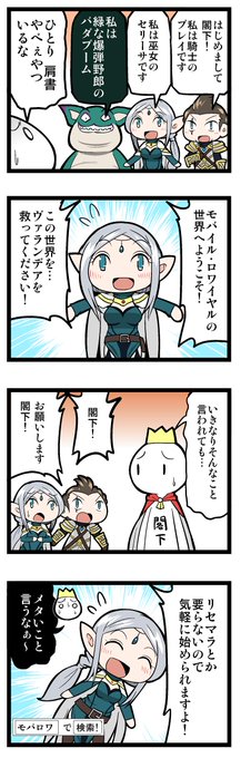 【告知】先月に引き続き、スマホゲーム「モバイル・ロワイヤル」の4コマ漫画を描かせていただきました!!今回は、居城の話・空中要塞の話・ヒーローの人気についての話です!よろしくお願いいたします!!