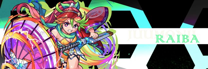 十文字雷葉αのアイコンとヘッダーです(*´ω`*) まだこの子だけ引けてないって方は祈願代わりに使ってみるとでるかも😊 ぜひ、試してみてください(*'ω'*) 使って当たったらリプしてね #笹本棚 #モンスト夏祭り #十文字雷葉α